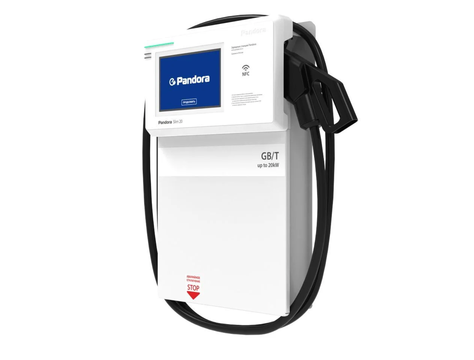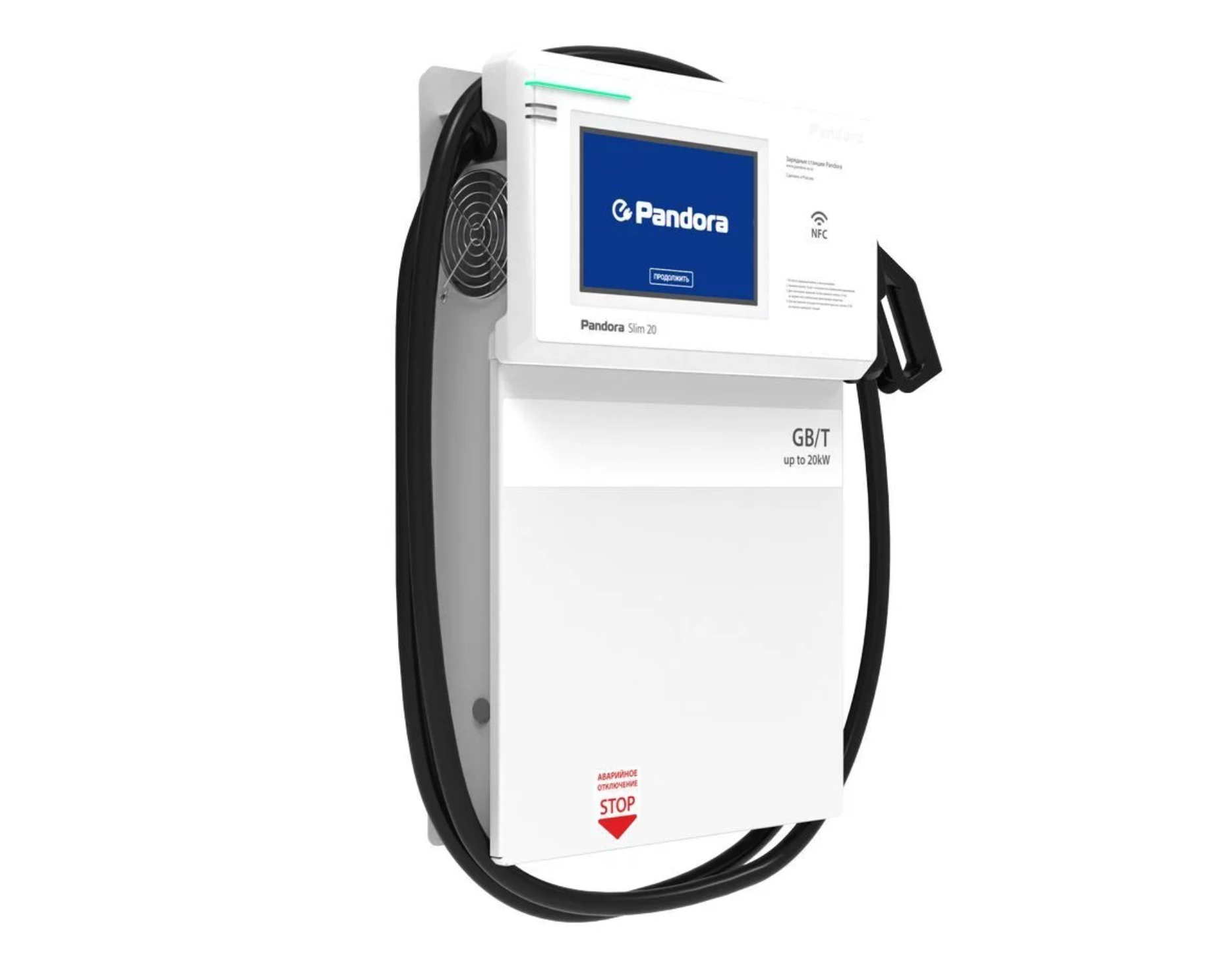 Зарядная станция Pandora Slim 20 предназначена для быстрой зарядки электромобилей постоянным током.